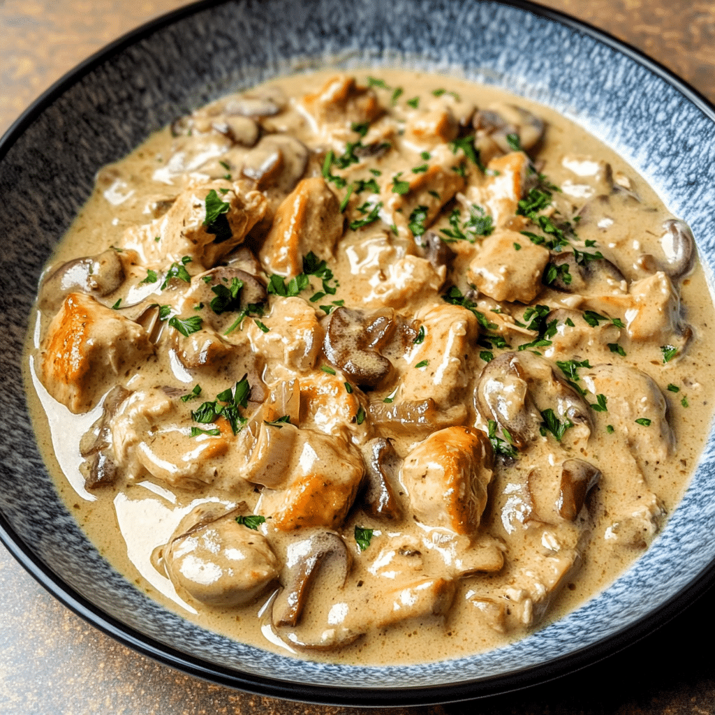 This dish holds a special place in my heart. I first made it for a family dinner, and it quickly became a go-to recipe. The moment the chicken hits the pan, the scent of garlic and onions fills the air, setting the stage for a comforting meal. As the sauce thickens, you can’t help but sneak a taste, knowing it will be worth the wait. The creamy sauce is the star, melding perfectly with the chicken and mushrooms for a dish that’s both luxurious and soul-satisfying.