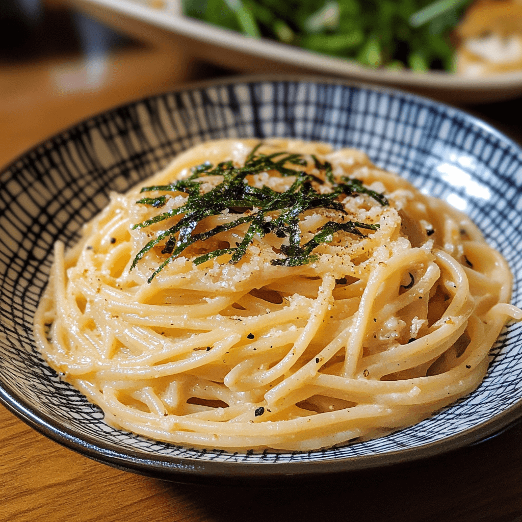 - Garnish and Serve: Divide the creamy mentaiko pasta among serving bowls. Garnish with chopped green onions and nori seaweed strips (if using). Serve immediately while hot.