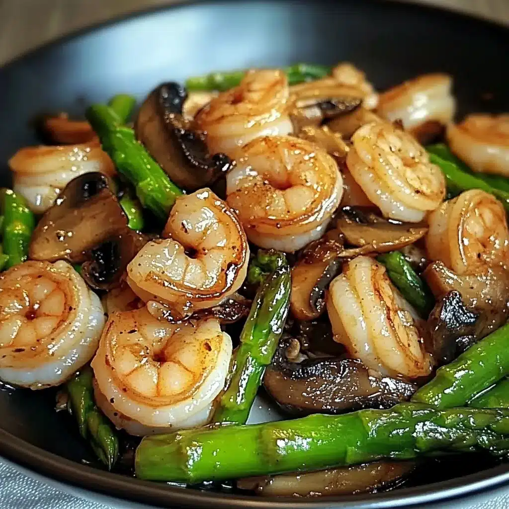 1. Prepare Ingredients: Gather all ingredients. Ensure shrimp are peeled and deveined, asparagus is trimmed, and mushrooms are sliced.