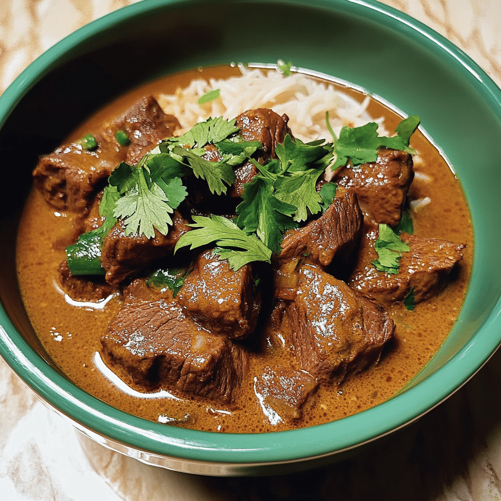 Absolutely! Substitute the beef with chickpeas or tofu and use vegetable broth instead of beef broth. - What’s the best way to thicken the curry?